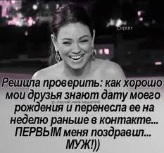 Жизненные слова.Alenka: ↑09 сен 2023, 10:01 Бывает, что муж и забывает...Давно не обращаю на это внимание и не обижаюсь.Если хочу праздника с цветами и рестораном - начинаю напоминать за неделю, а если не хочется просто сама утром напомню, поцеловав в щечку. Есть в жизни гораздо более важные вещи, о которых он помнит и о которых напоминать не приходиться.